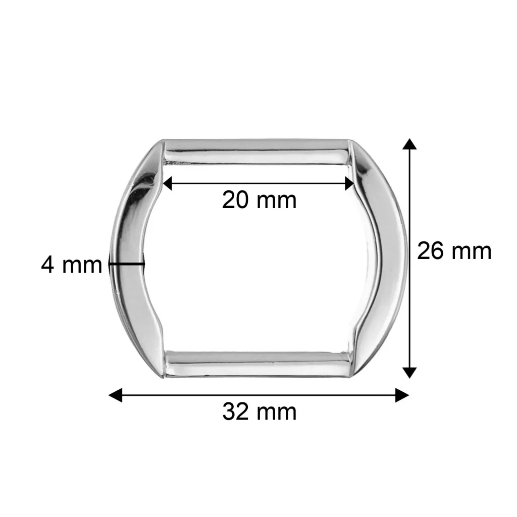 Decorative curved handle connector designed for 20 mm wide bag straps. This metal accessory instantly adds a more elegant and distinctive look to your bag.