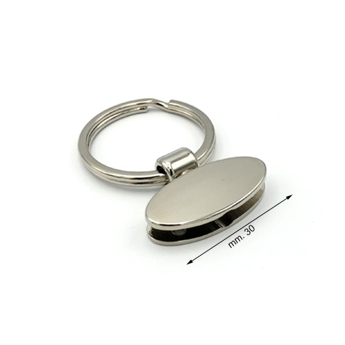 Nickel Coloured Keychain 25 mm with Ring, with 30 mm Wide Oval End.