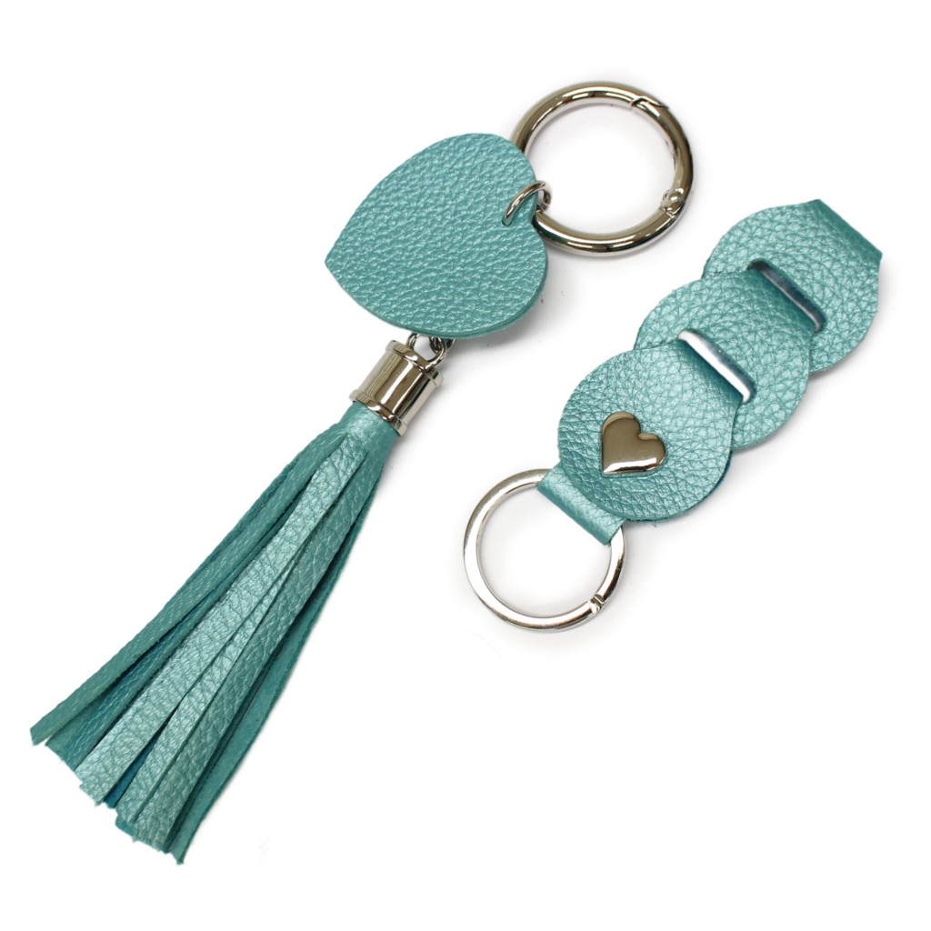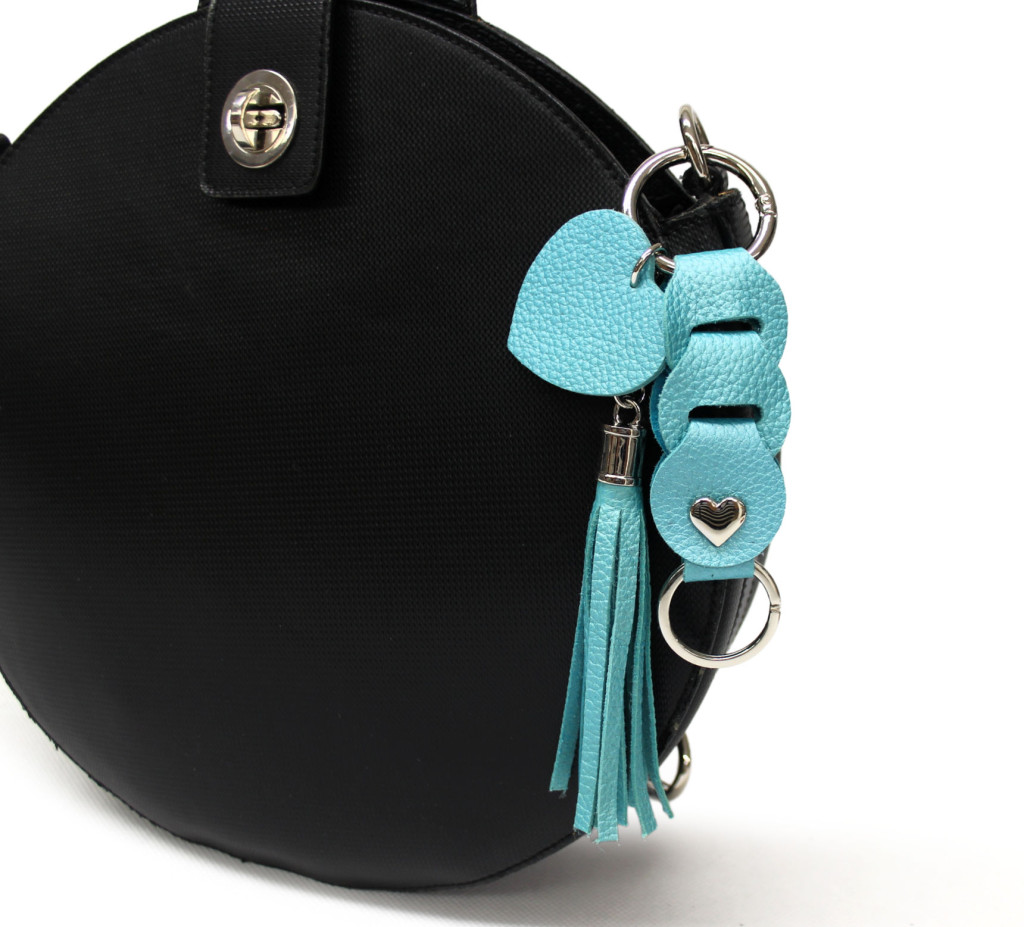 Leather Bag Charm Heart & Tassel Design, Turquoise