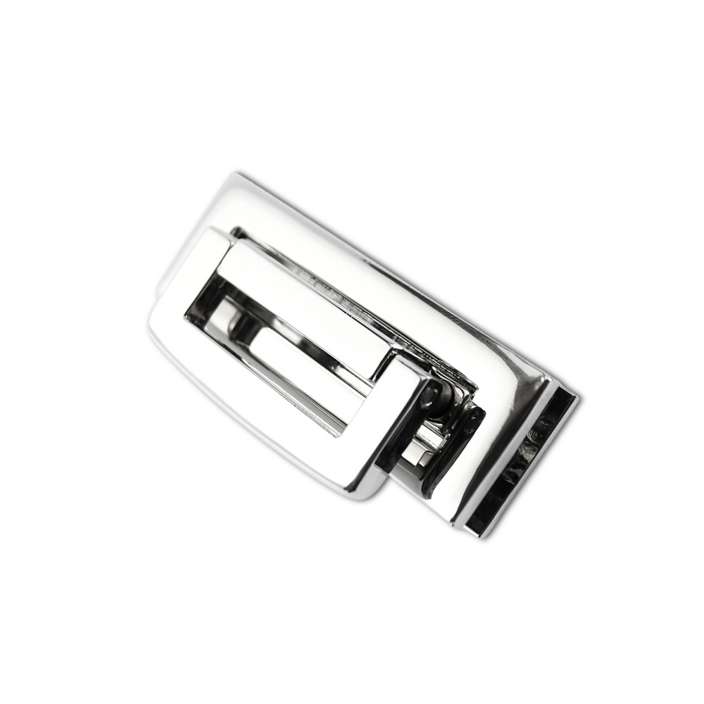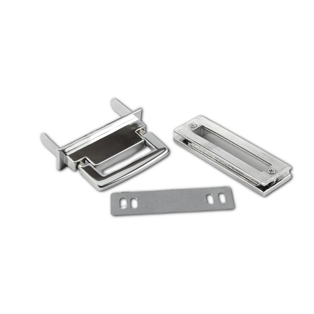 Nickel Coloured, Wide Hinge-Lock. It's 63 mm wide, It's 20 mm tall.