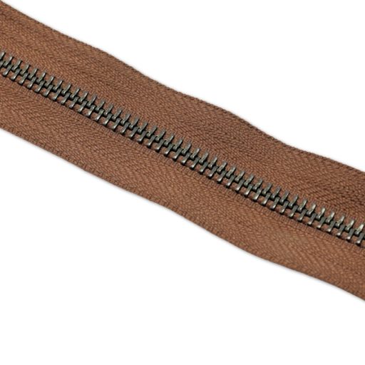Antique standard YKK metal zipper, with brown tape. Size T5.