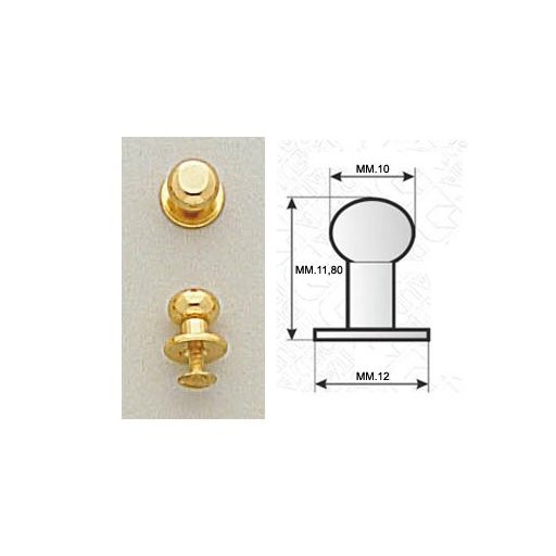 Stud. It's 11,8 mm tall, The diameter of the base is 12 mm, The diameter of the head is 10 mm. Gold Coloured.