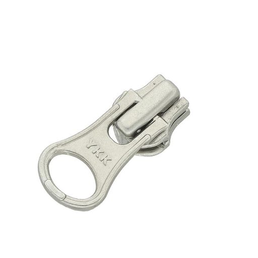 Elegant YKK metal slider with (nickel free) finish, an essential component of every zipper. This type of slider has a locking function, making it perfectly suited for repairing coats, cardigans etc..