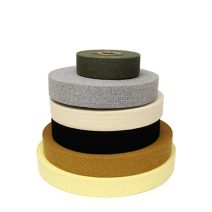 Our range of webbing by the meter includes thick, heavy-duty cotton webbing straps woven from 100% natural materials and synthetic satin bag webbing with a shiny, silky feel.
